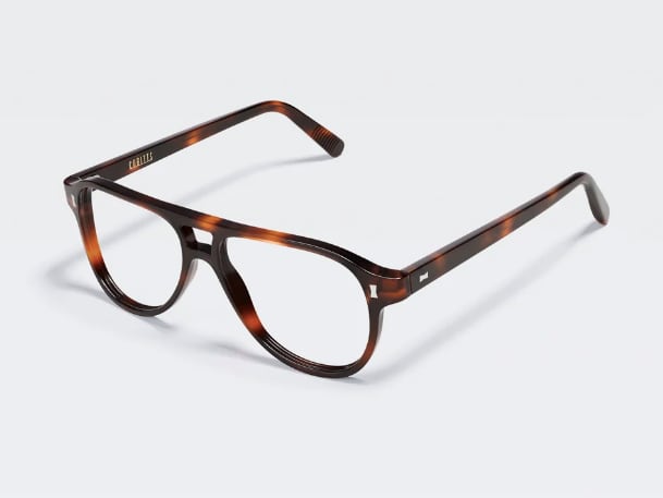 Killick は軽量のアビエイター アセテート フレームで、ダブル ブリッジのディテールとスリムなホッケー エンド テンプルが特徴です。